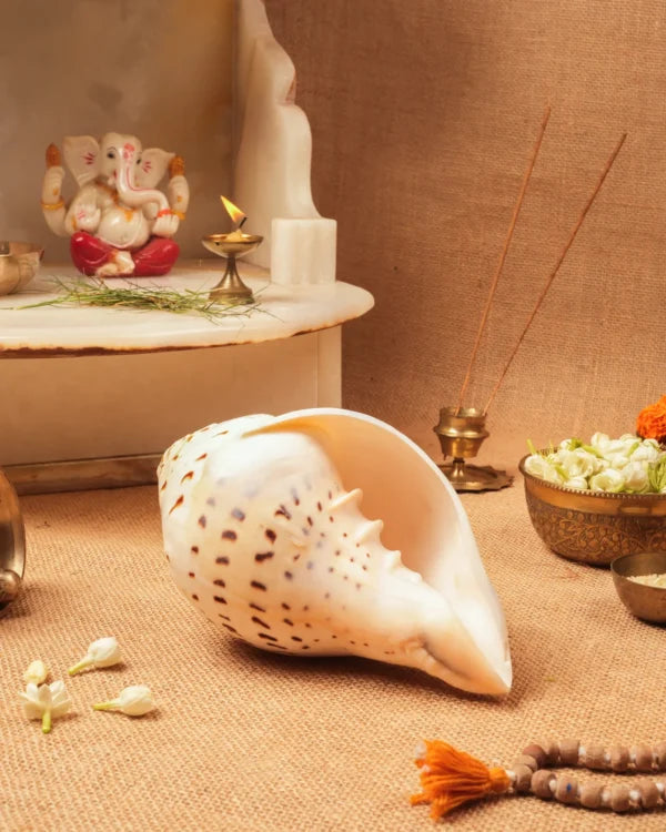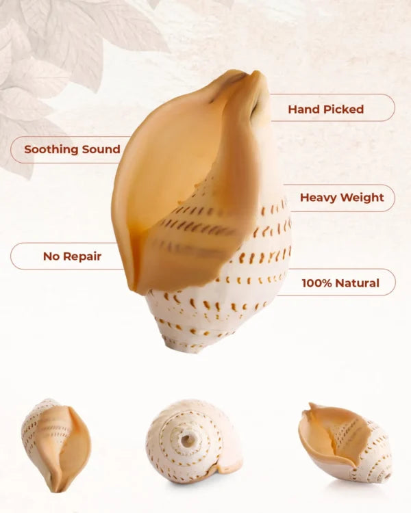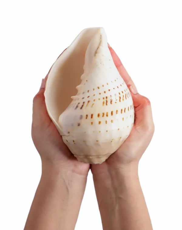 With its intricate dot patterns and rounded shape, this sacred conch produces a soothing sound, making it a beautiful symbol of grace and purity for spiritual practices.